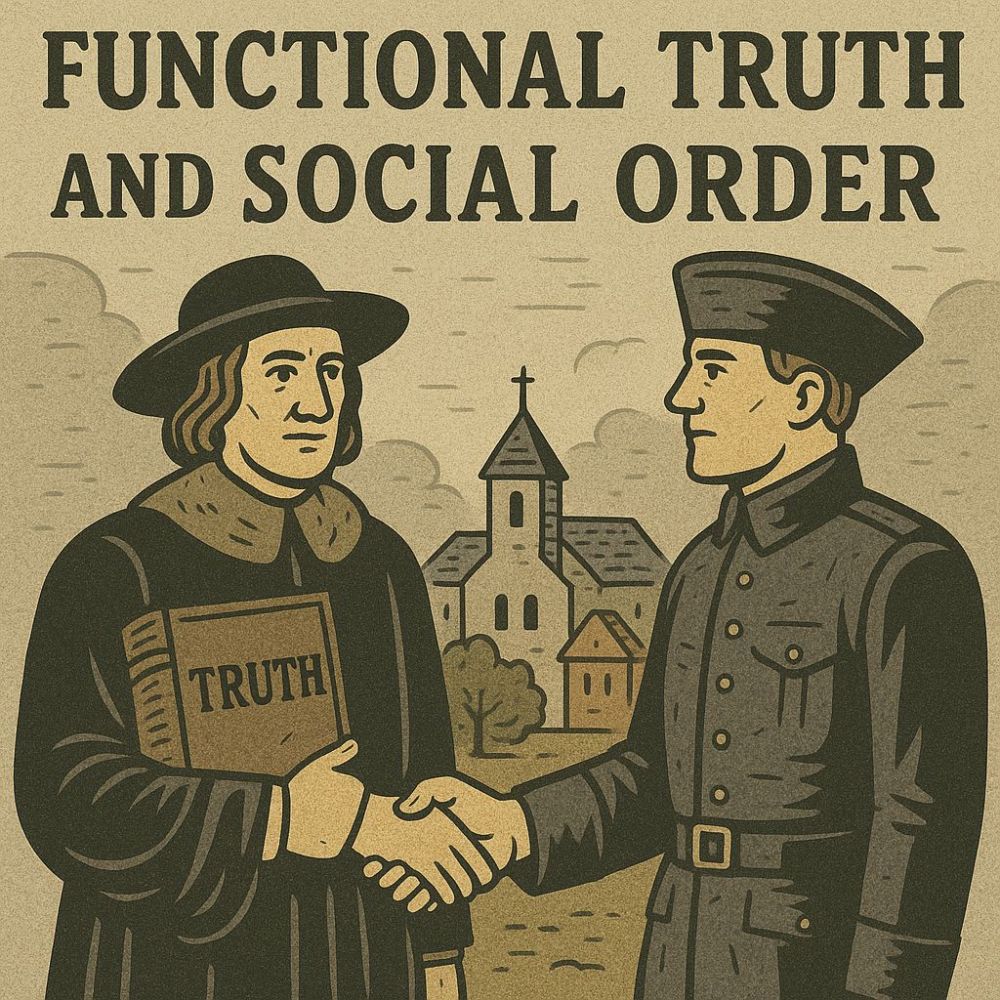 L’ordine sociale su vasta scala (necessario per riscuotere tasse, coordinare progetti di irrigazione o reclutare eserciti) non può essere mantenuto solo dalla forza bruta. Richiede una verità che sia funzionale alla coesione e all’obbedienza del sistema, una verità operativa, anche se non corrisponde a fatti empirici. Tale verità, spesso di natura mitologica o religiosa, è impiegata per stabilizzare l’intero sistema sociopolitico, subordinando la ricerca della verità oggettiva al mantenimento dell’ordine istituzionale.